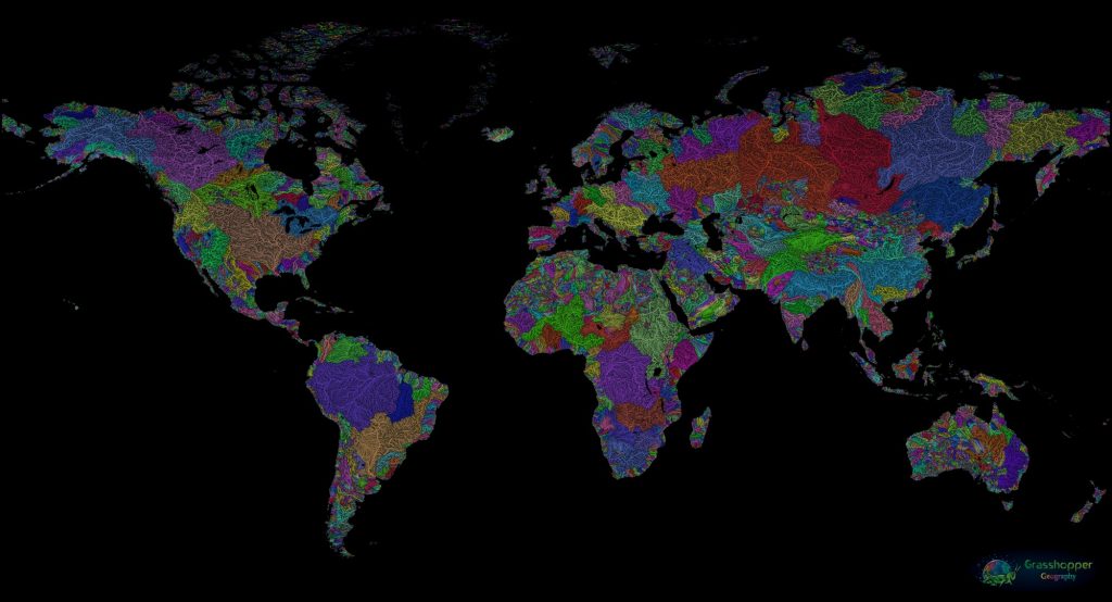 Even this beautiful map by Robert Szucs of the watersheds of the world, is not quite a true bioregional map. Instead, it’s a layer, it’s only when many layers of place, including animal and plant communities are brought together that we see a true bioregional map. When these layers are brought together, it can better represent the geographic, cultural, historic and ecological realities of a place, and guide us towards more place appropriate ways of living and technology that can fit within a truly net carbon, non-extractive and sustainable framework.